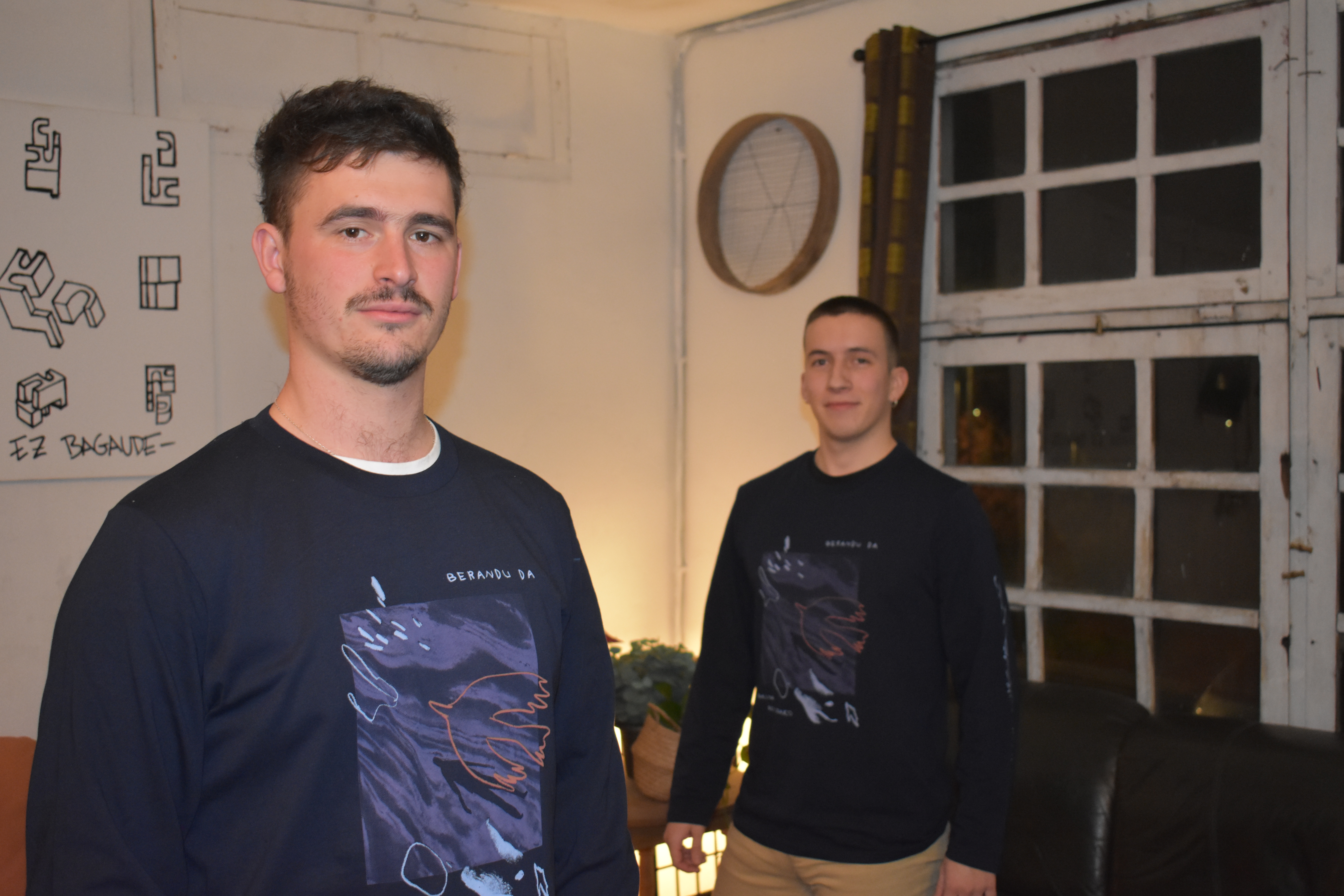 Adib. Bi kamiseta L eta XL bat.